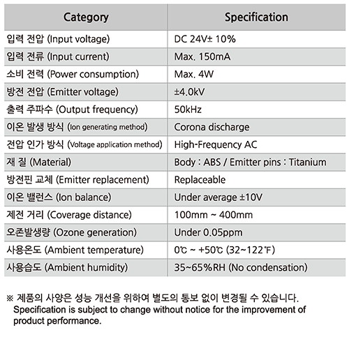 - 고주파 AC 방식 채용 근거리 제전 탁월