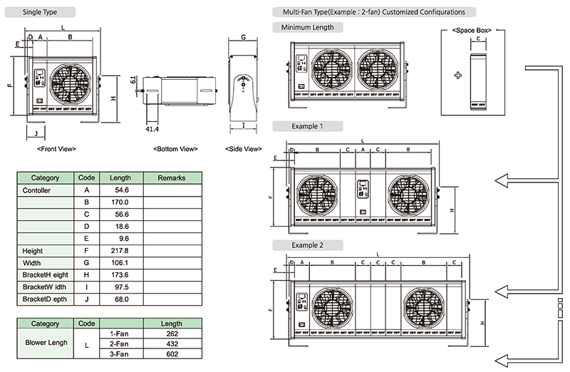 - 140mm Fan 사용으로 최대 풍량[1Fan 기준], 6.425㎥/min까지 사용 가능[4단계 조절 기능]