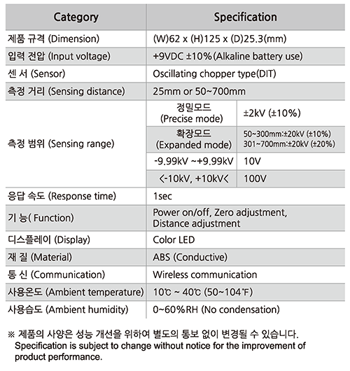 무선 정전기 측정기 ARS-M002Z2 - 본 제품은 무선 휴대용 정전기 측정기로서 발신기를 장착 수신기가 장착된 PC와 실시간으로 연동하여 성능을 확인 할 수 있는 제품 입니다.